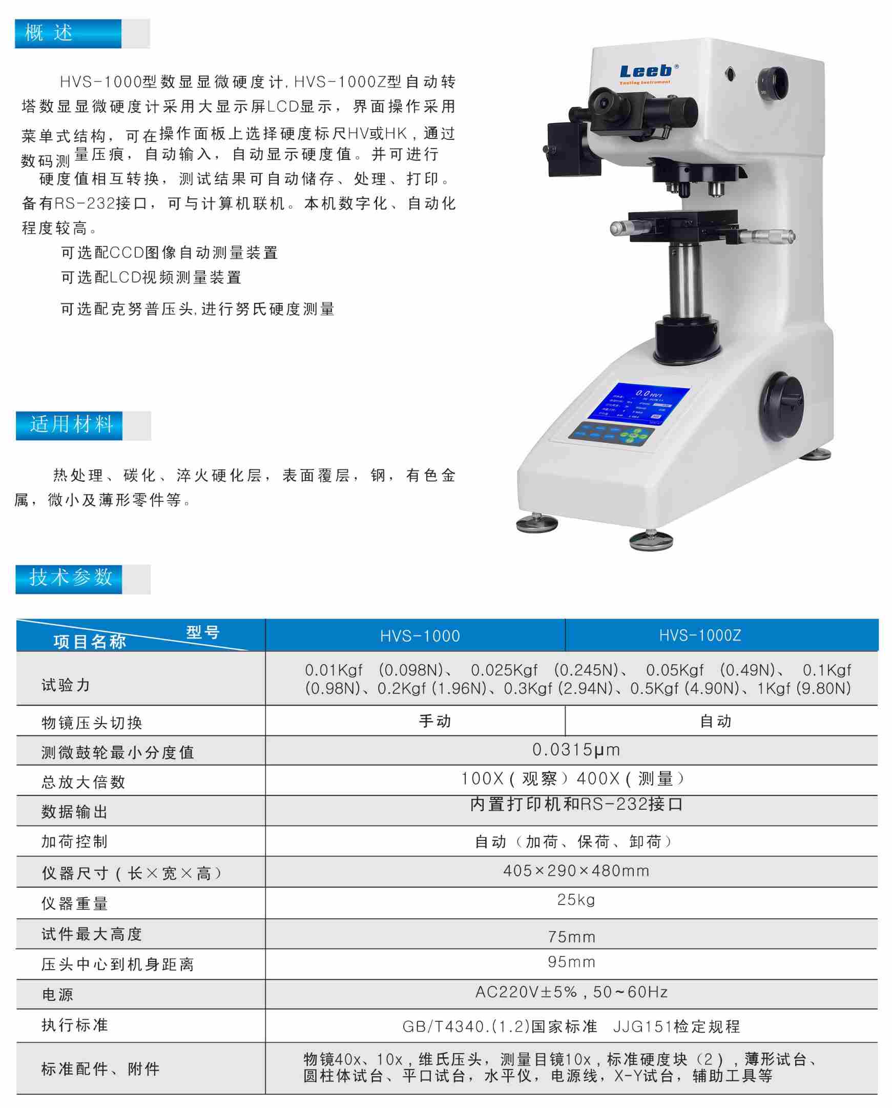HVS-1000型數(shù)顯顯微硬度計(jì),HVS-1000Z型自動(dòng)轉(zhuǎn)塔數(shù)顯顯微硬度計(jì)采用大顯示屏LCD顯示,界面操作采用菜單式結(jié)構(gòu),可在操作面板上選擇硬度標(biāo)尺HVHK,通過數(shù)碼測(cè)量壓痕,自動(dòng)輸入,自動(dòng)顯示硬度值。