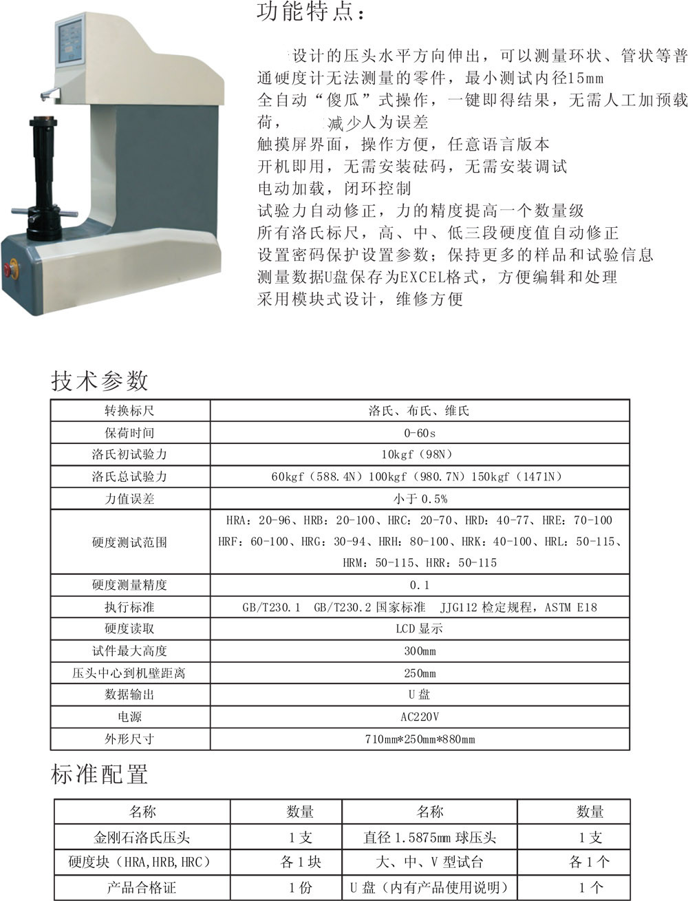 ● 壓頭水平方向伸出,可以測量環(huán)狀、管狀等普通硬度計(jì)無法測量的零件,最小測試內(nèi)徑15mm;