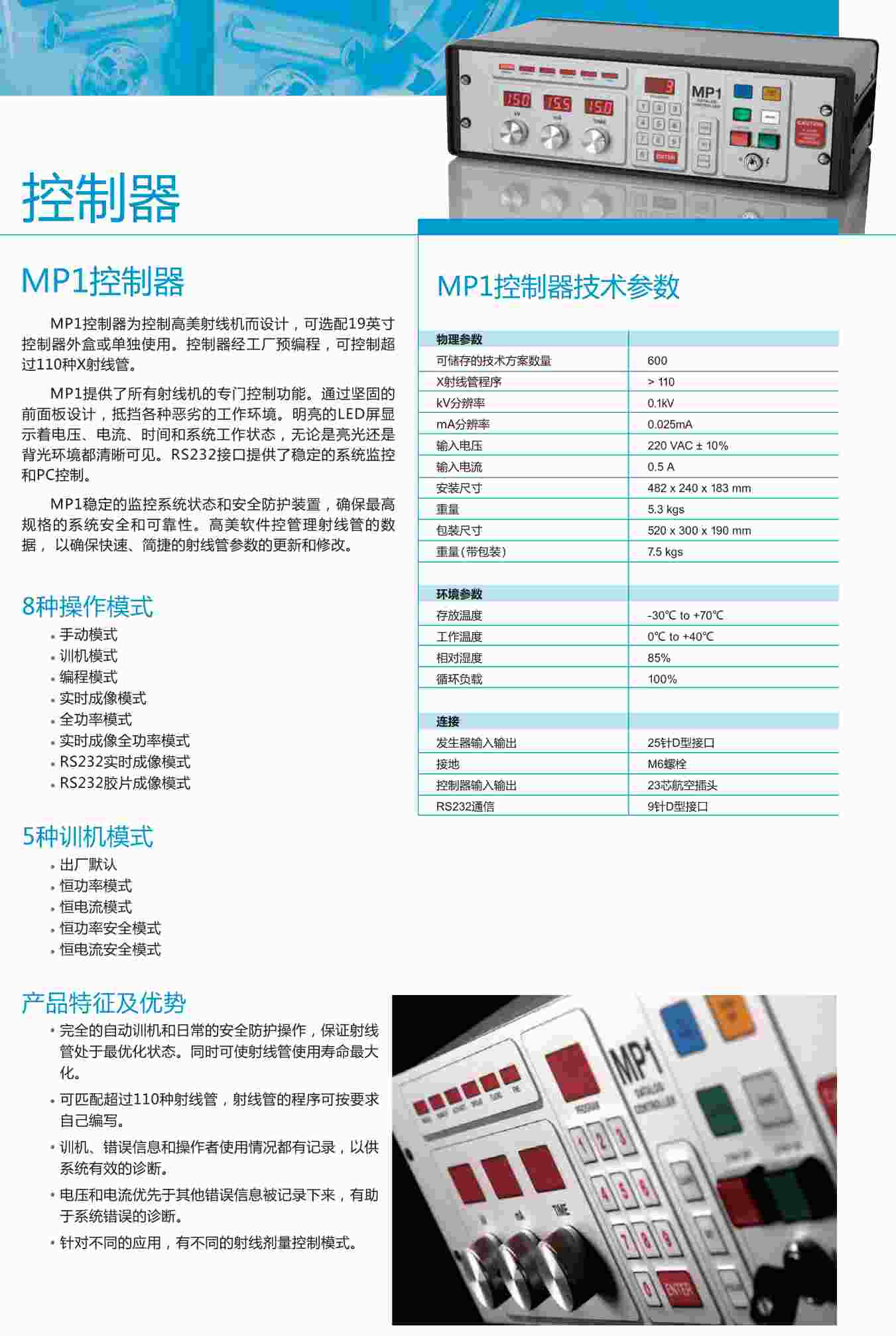 MP1控制器為控制高美射線機(jī)而設(shè)計(jì),可選配19英寸控制器外盒或單獨(dú)使用??刂破鹘?jīng)工廠預(yù)編程,可控制超過110種X射線管。
