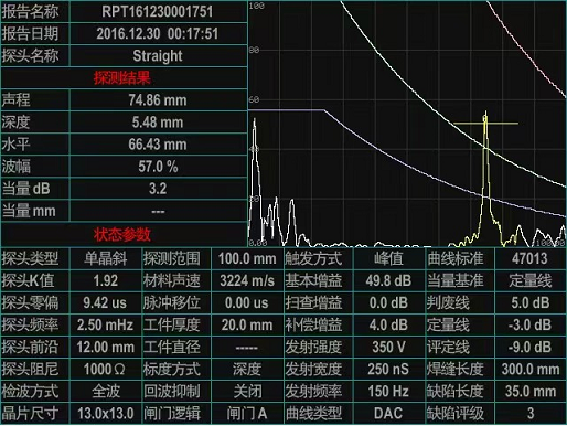 除了能現(xiàn)場藍(lán)牙無線連接,手機(jī)APP生成探傷報(bào)告,并實(shí)現(xiàn)現(xiàn)場打印報(bào)告之外,還能通過U盤連接電腦生成帶有智能評(píng)級(jí)的EXCEL格式的探傷報(bào)告。