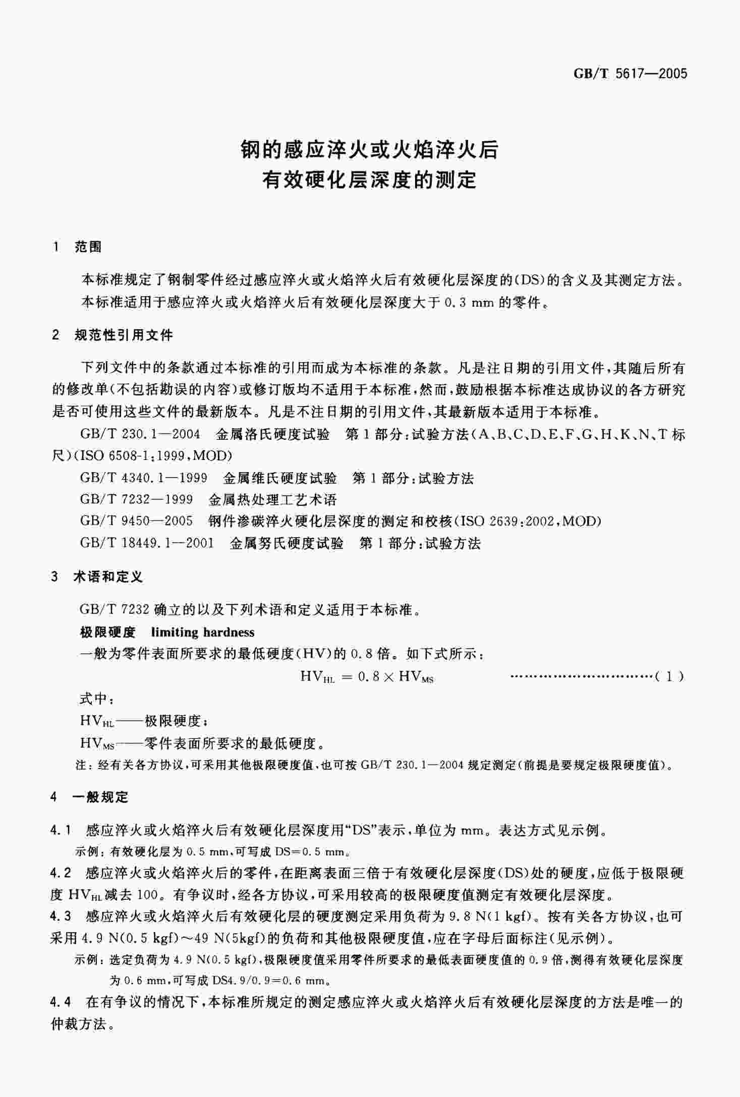 GBT 5617-2005 鋼的感應淬火或火焰淬火后有效硬化層深度的測定
