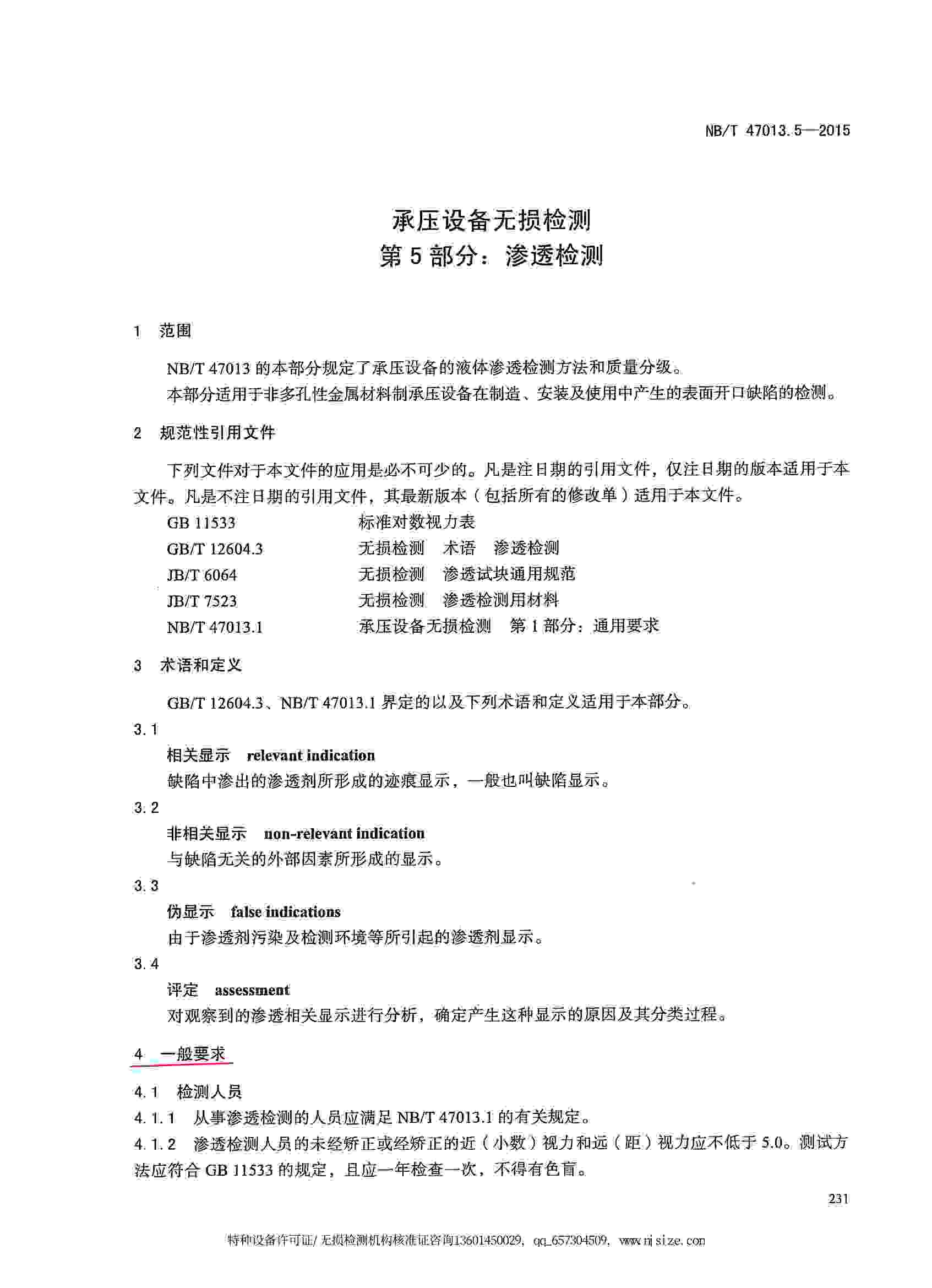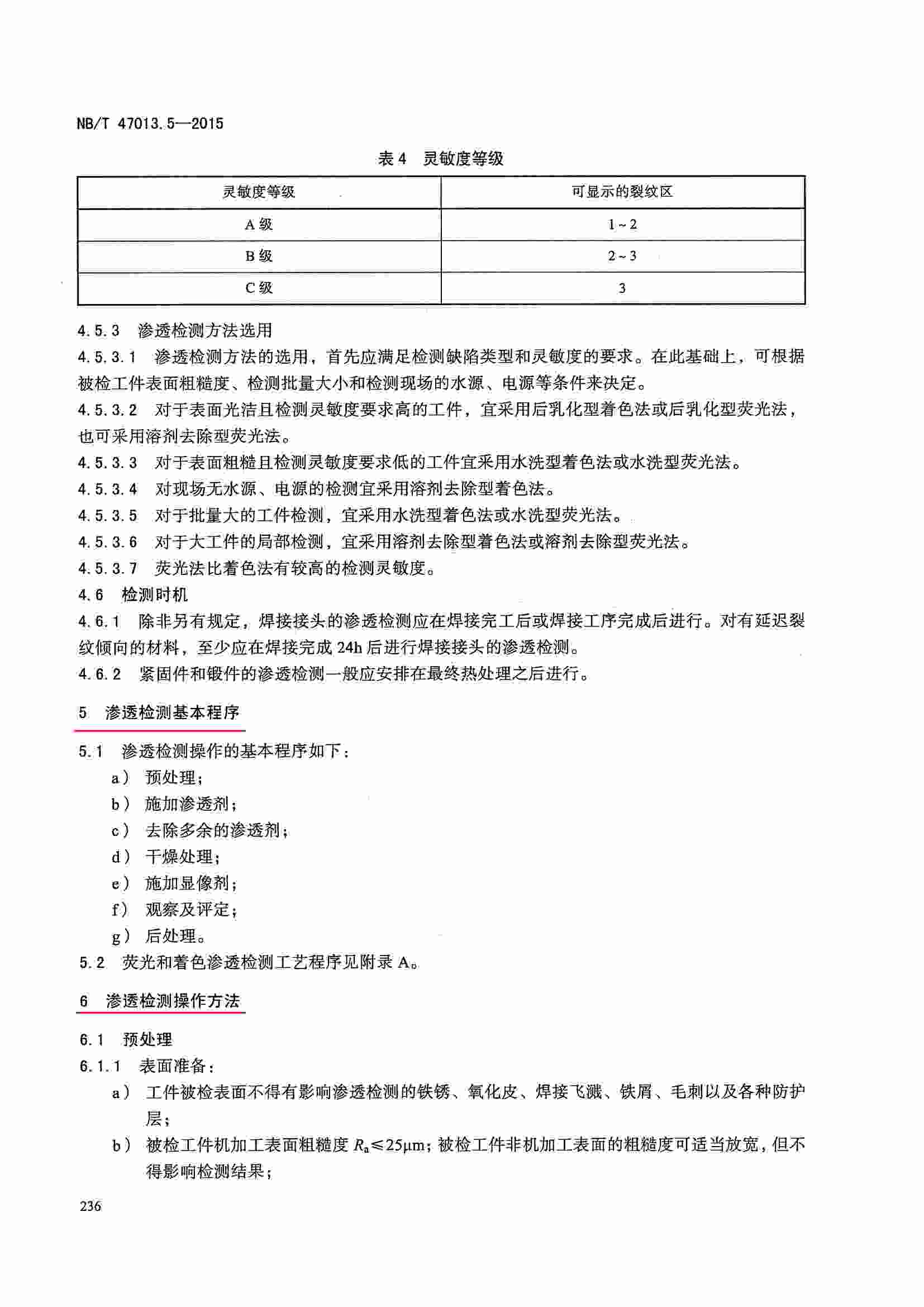 NB/T47013.5-2015 承壓設(shè)備無(wú)損檢測(cè) 第5部分:滲透檢測(cè)