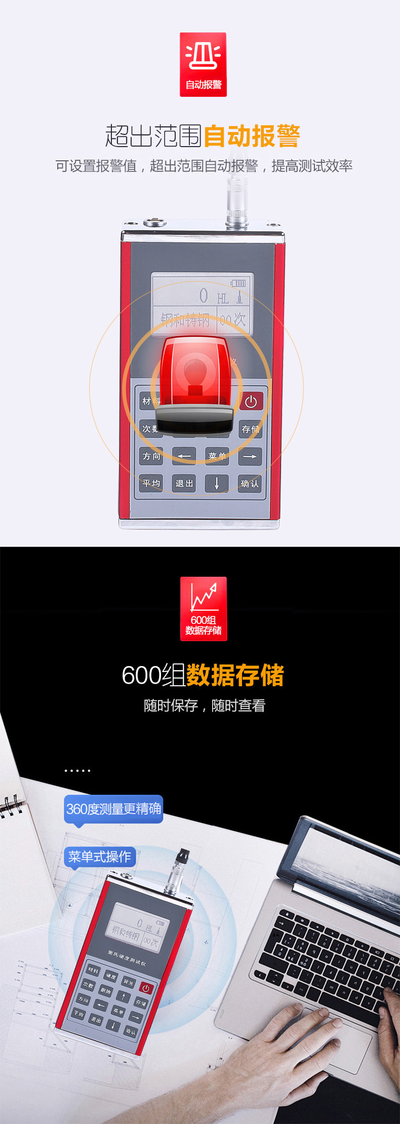 ● TH136 適合測量鑄鐵件及表面粗糙的工件的HB、HRB、硬度值。