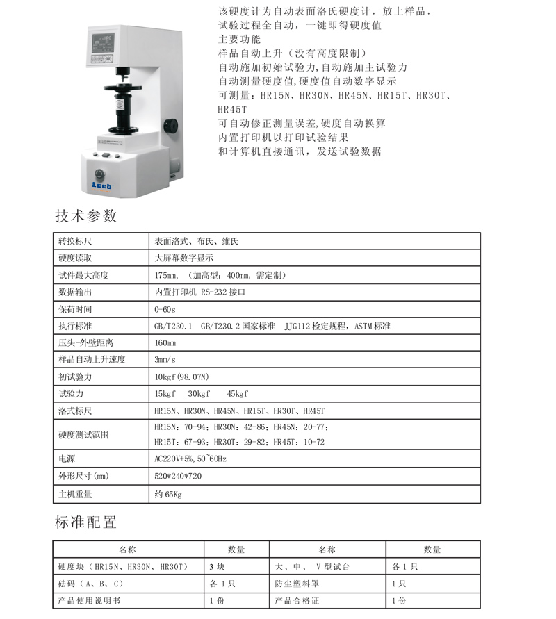 ● 該硬度計(jì)為自動(dòng)表面洛氏硬度計(jì),放上樣品試驗(yàn)過(guò)程全自動(dòng),一鍵即得硬度值;