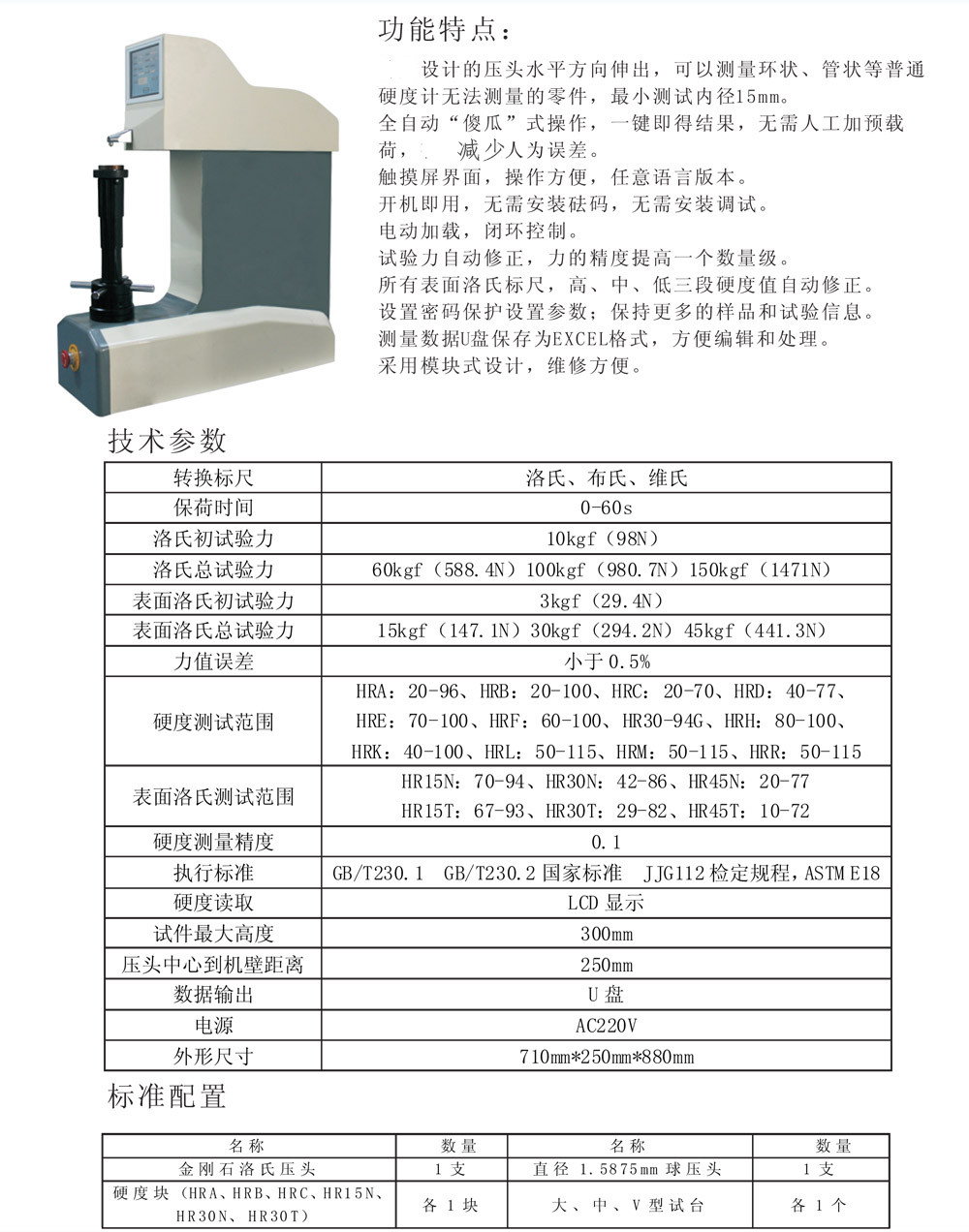 ● 壓頭水平方向伸出,可以測量環(huán)狀、管狀等普通硬度計(jì)無法測量的零件,最小測試內(nèi)徑15mm;