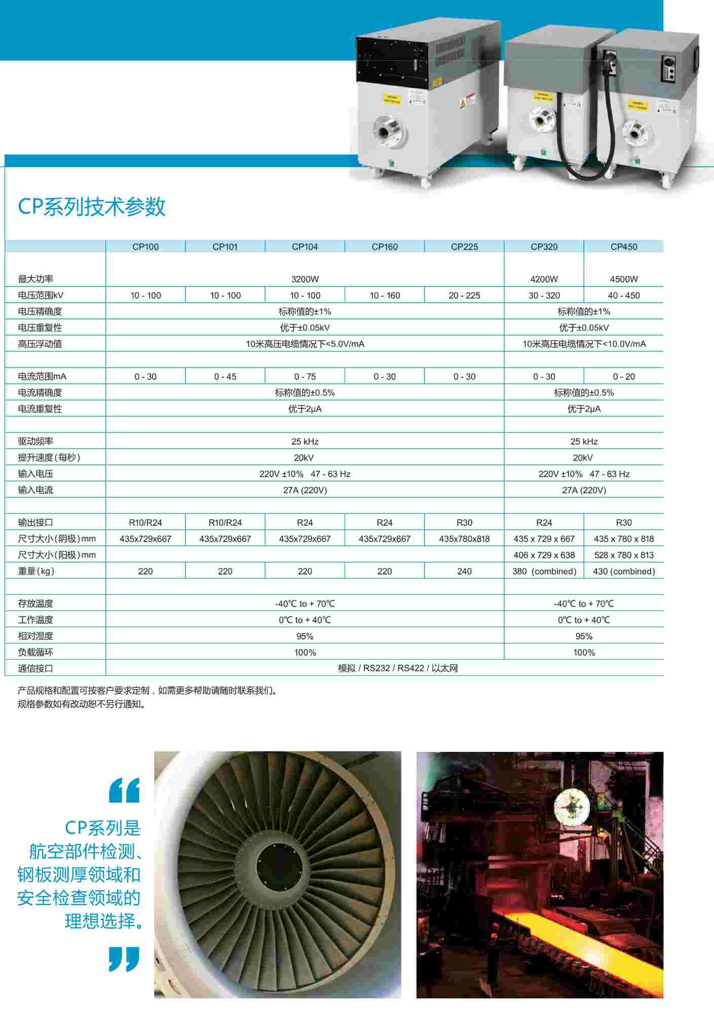 CP系列射線機主要應(yīng)用在同時滿足小焦點X射線實時成像和需要高功率大焦點X射線的高密度材料檢測。CP系列射線機可應(yīng)用在要求較高的航空膠片射線檢測領(lǐng)域和苛刻的、周期較長的鋼板厚度測量技術(shù)領(lǐng)域。由于CP系列精確度和可靠性較高,該產(chǎn)品也被廣泛應(yīng)用在安保和醫(yī)療射線方面。