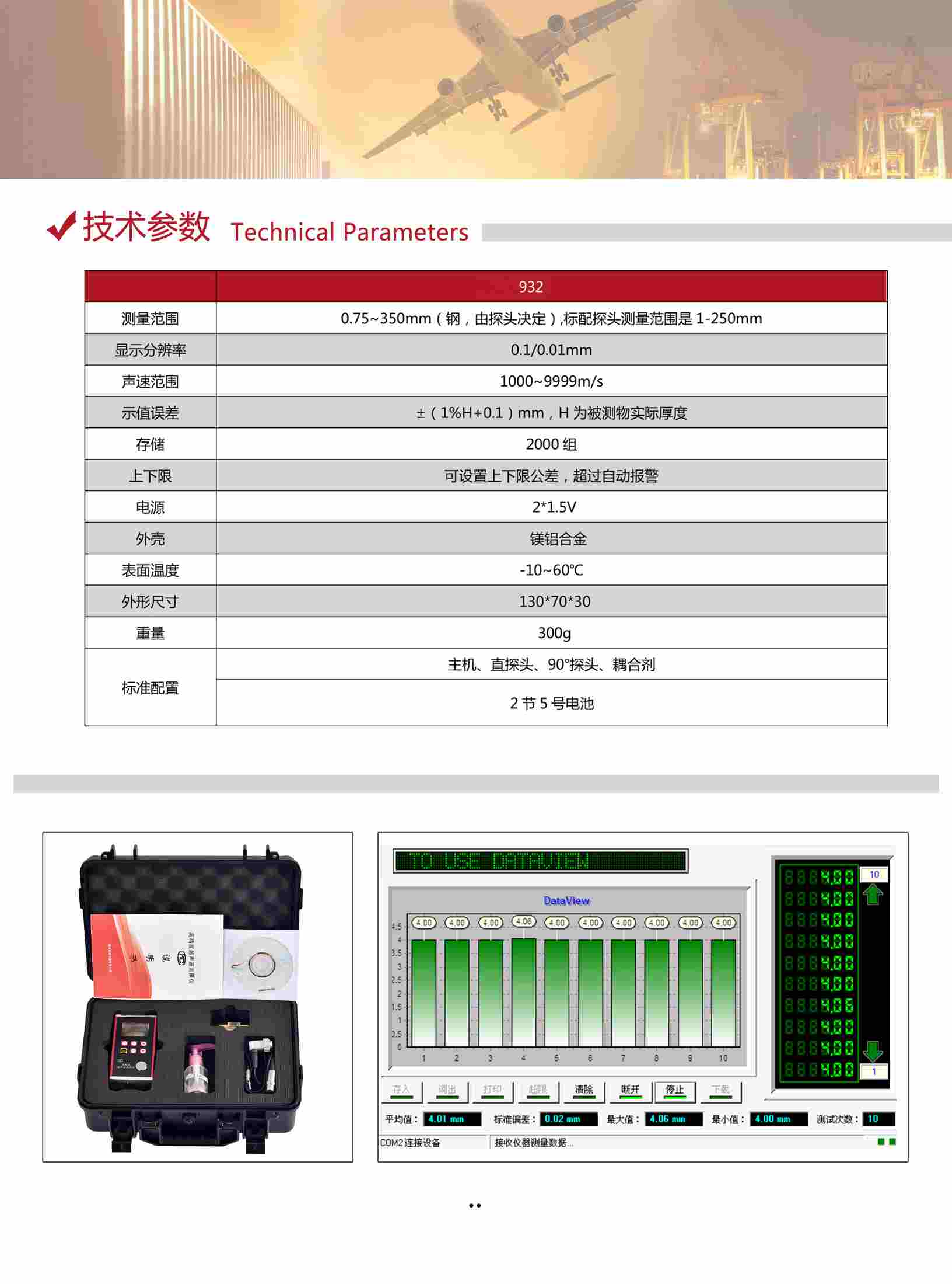 4.適合測(cè)量金屬(如鋼、鑄鐵、鋁、銅等)、塑料、陶瓷、玻璃、玻璃纖維及其它超聲波的良導(dǎo)體的厚度;