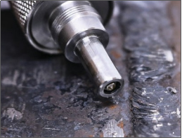 該儀器采用超聲接觸阻抗法(UCI),符合ASTM A1038標(biāo)準(zhǔn),是一種非直接測量壓痕的動態(tài)壓入法。端部鑲有特定壓頭(如金剛石壓頭)的振動桿受到激勵(lì)做縱向超聲振動,用一定的試驗(yàn)力將壓頭壓入試驗(yàn)表面,振動桿的縱向振動將受到阻抗,諧振頻率發(fā)生變化,從而得出硬度值。這種硬度測量方法已經(jīng)在各國大范圍使用,并且已經(jīng)在工業(yè)領(lǐng)域使用了50多年。