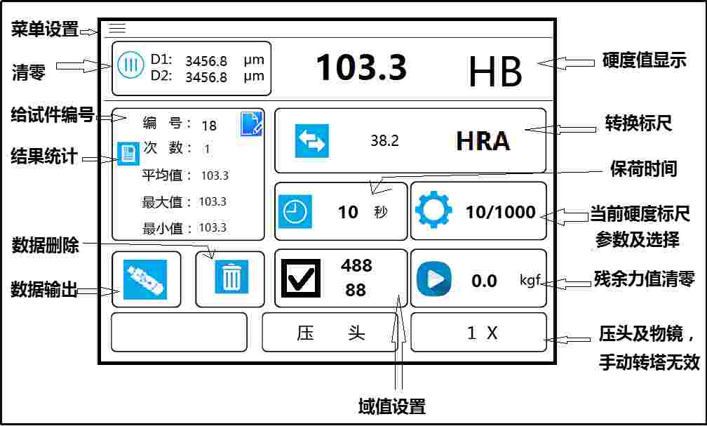 ● 壓痕直徑長(zhǎng)度D1和D2值輸入,減少人為讀數(shù)誤差;