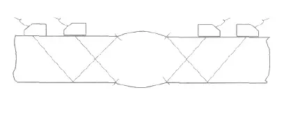 1.2.3 2 次波檢測時(shí), 可用手指沾油拍打遠(yuǎn)離探頭側(cè)的焊角, 焊角回波會(huì)明顯跳動(dòng)。