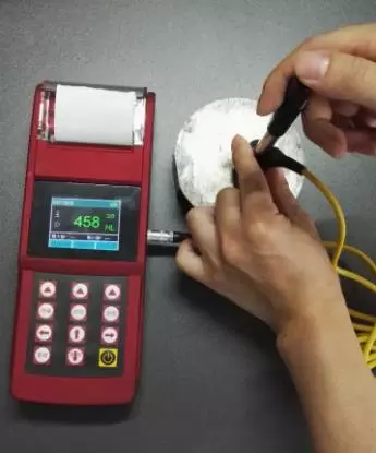 注:使用里氏硬度計測量時需被測工件測試條件,主要是三方面的要求:工件重量不小于2KG,最小厚度不小于10mm,表面粗糙度不大于1.6um。在不足上述條件時需要穩(wěn)固支撐或密實耦合!