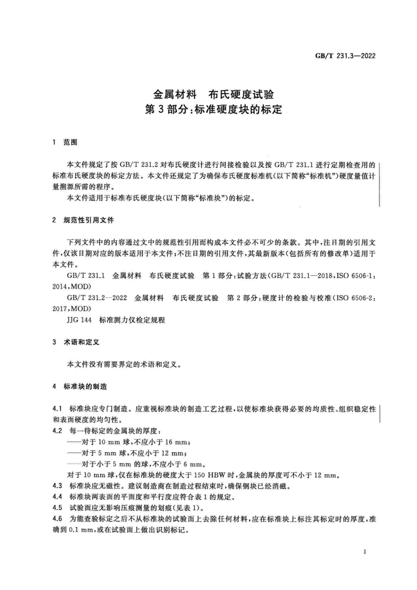 GBT 231.3-2022 金屬材料 布氏硬度試驗 第3部分:標準硬度塊的標定