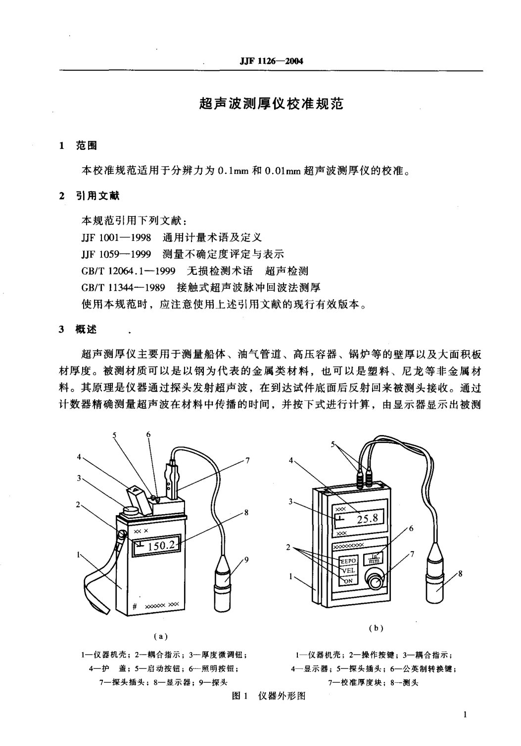 JJF1126-2004超聲波測(cè)厚儀校準(zhǔn)規(guī)范