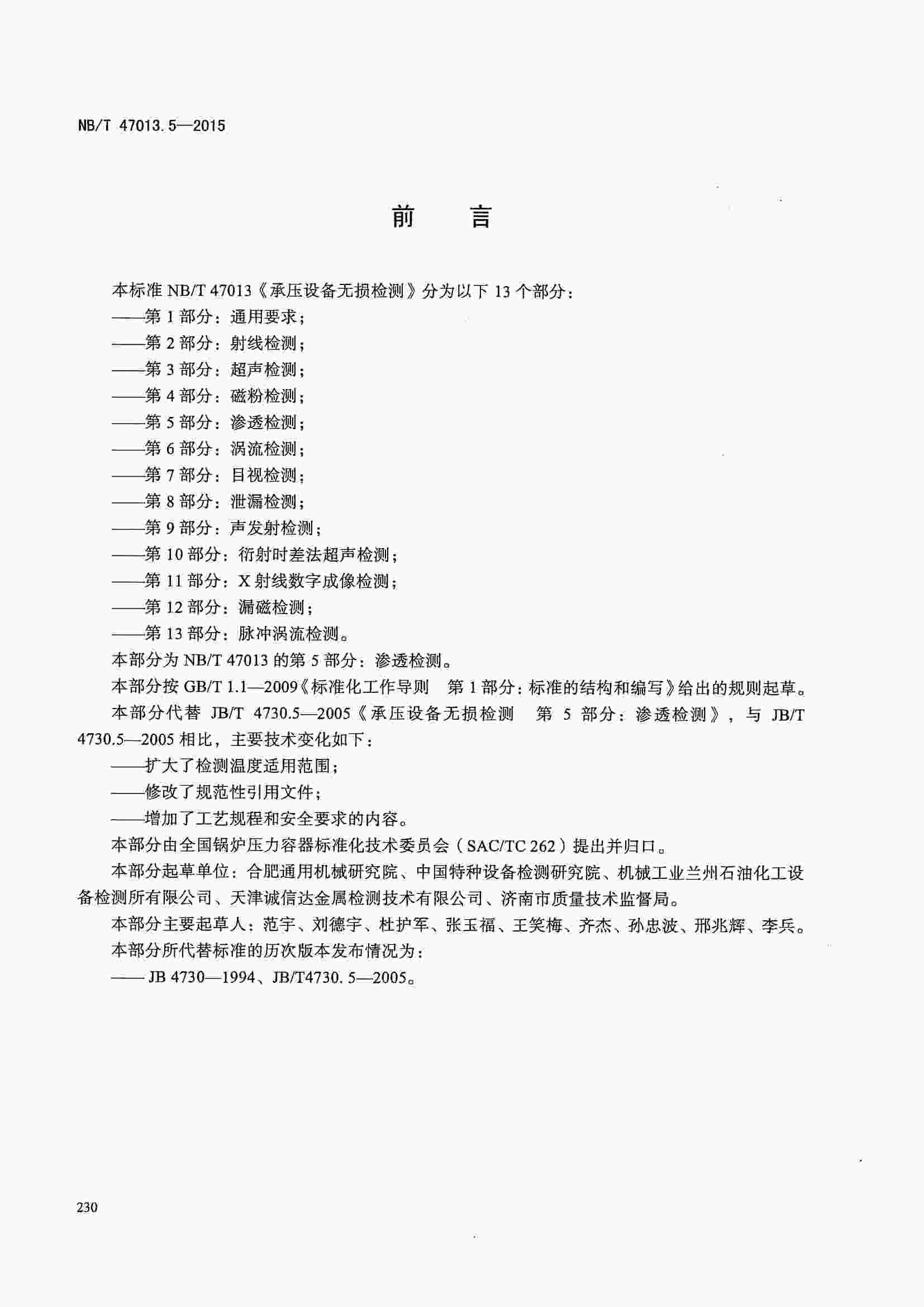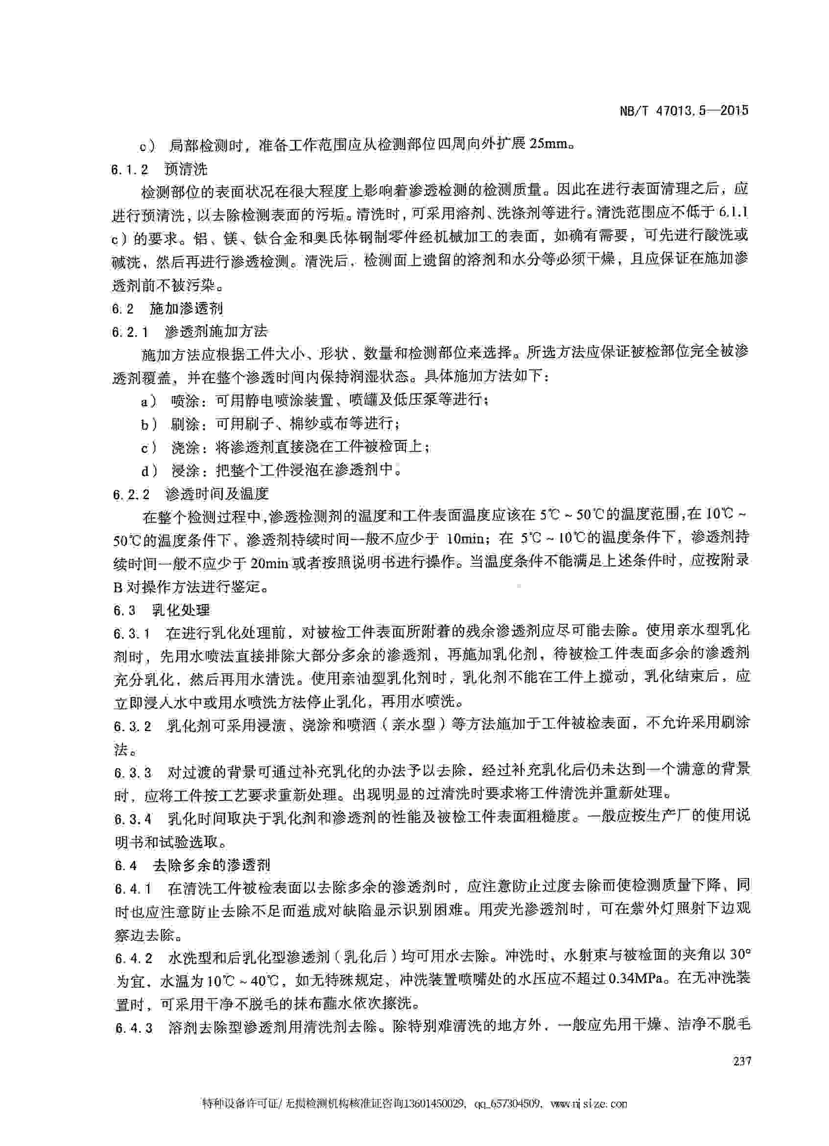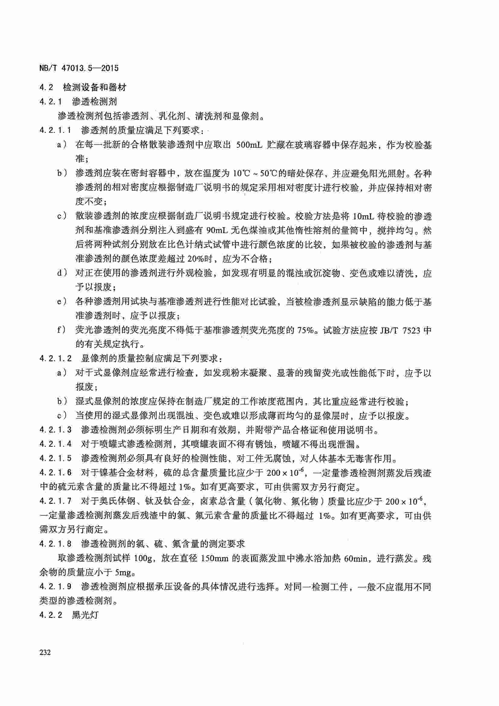 NB/T47013.5-2015 承壓設(shè)備無損檢測 第5部分:滲透檢測