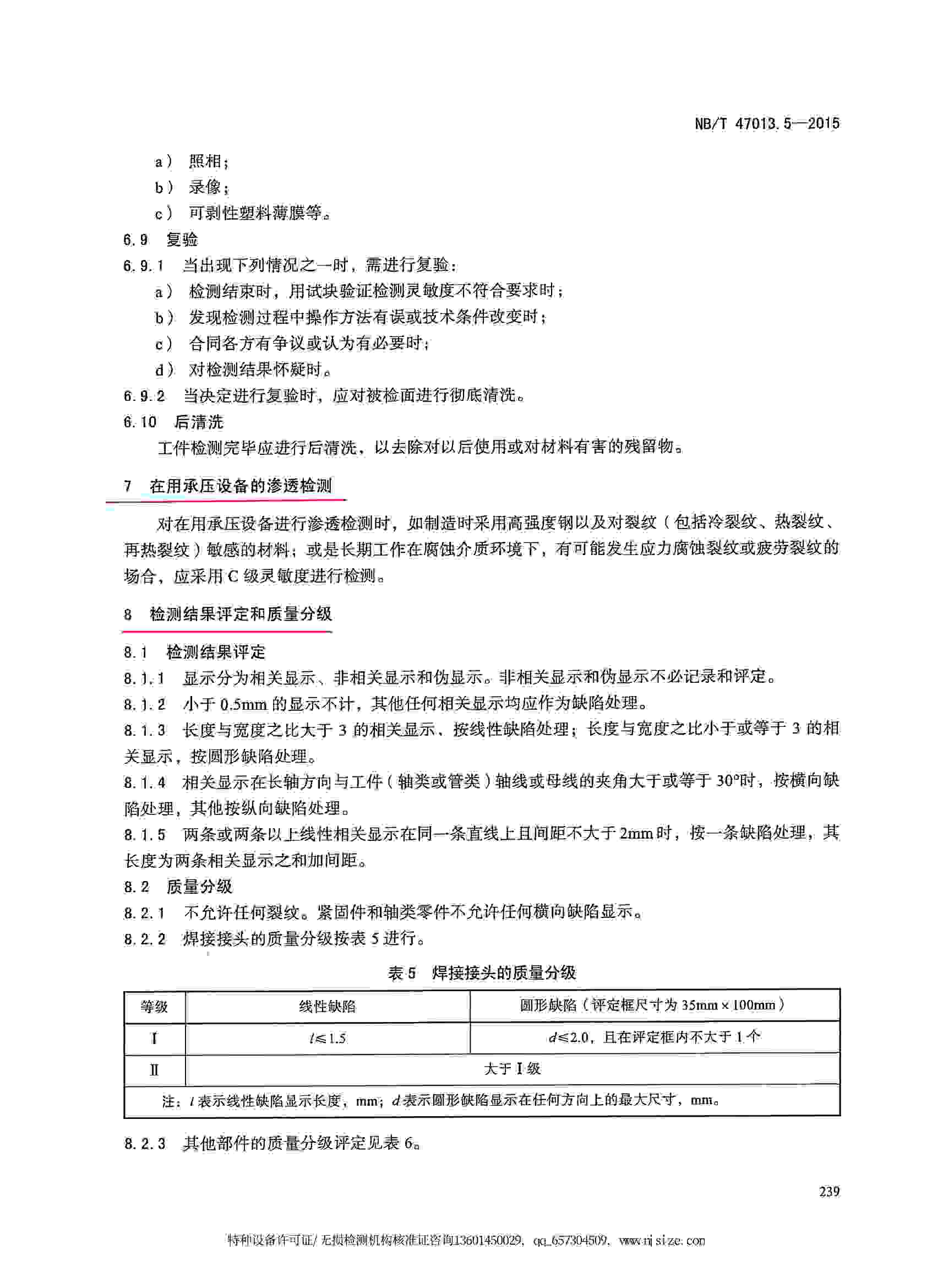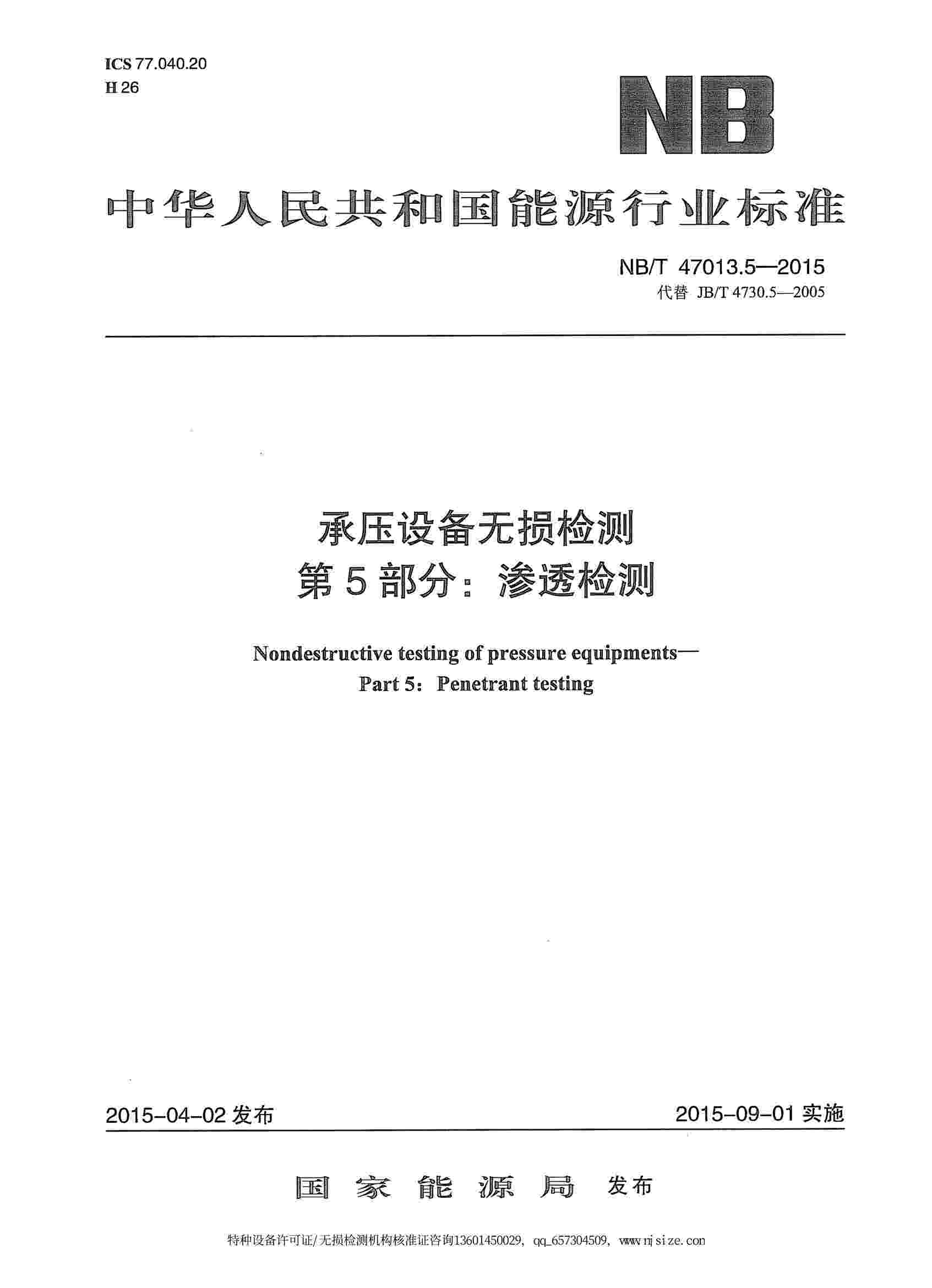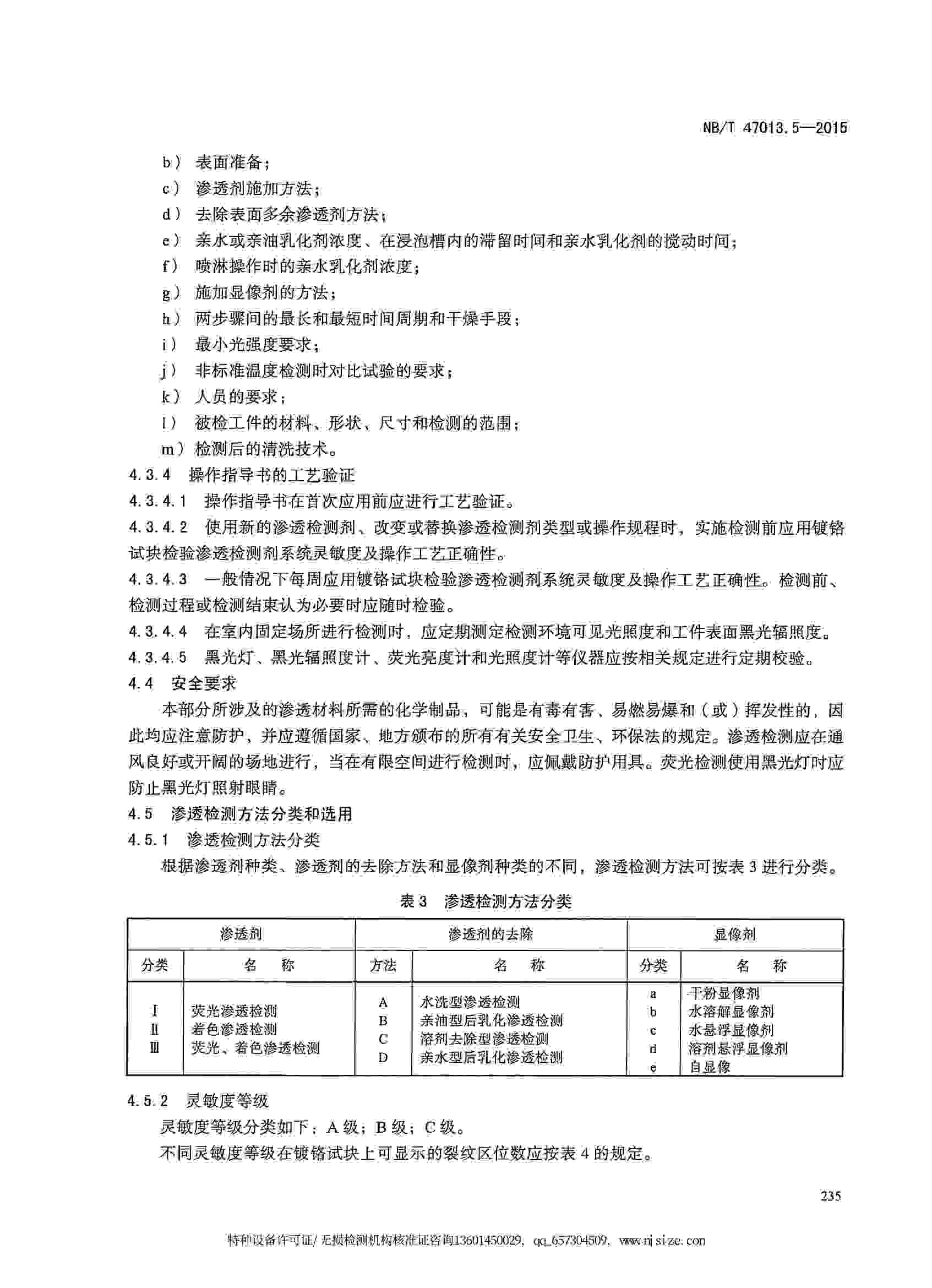 NB/T47013.5-2015 承壓設(shè)備無損檢測 第5部分:滲透檢測