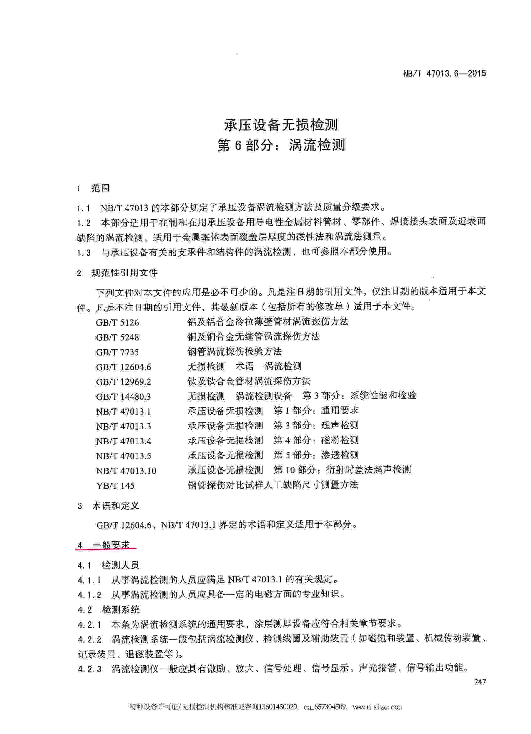 NB/T47013.6-2015 承壓設(shè)備無(wú)損檢測(cè) 第6部分:渦流檢測(cè)
