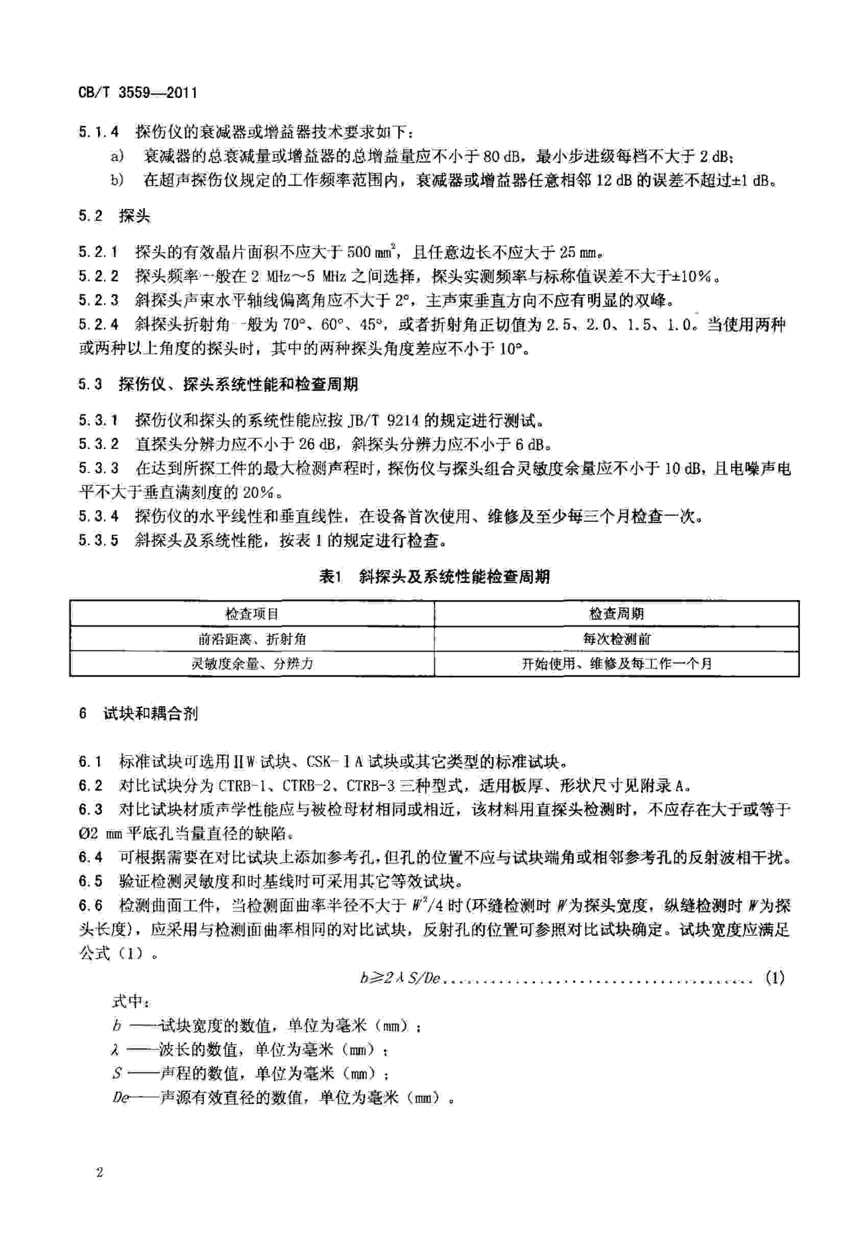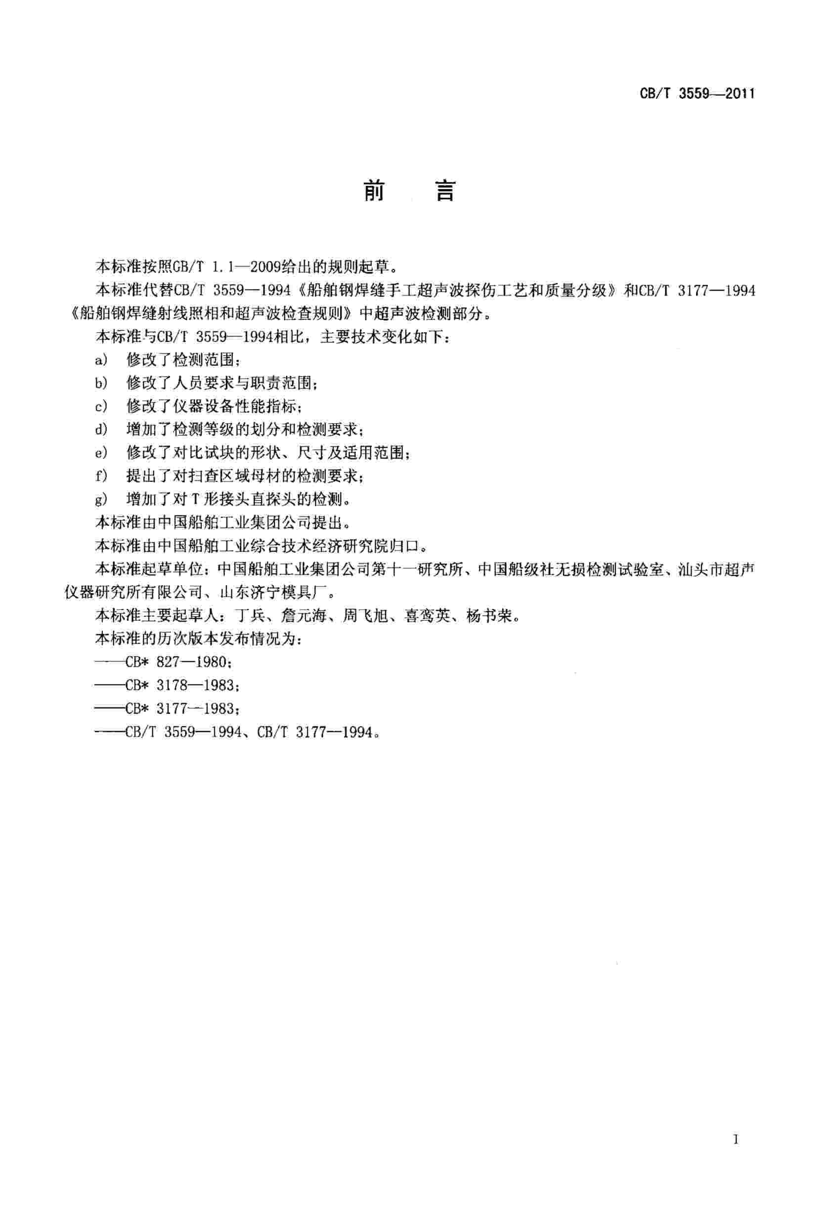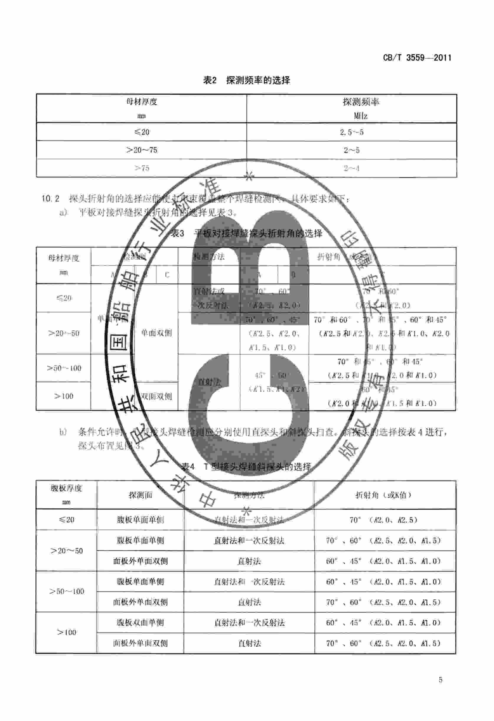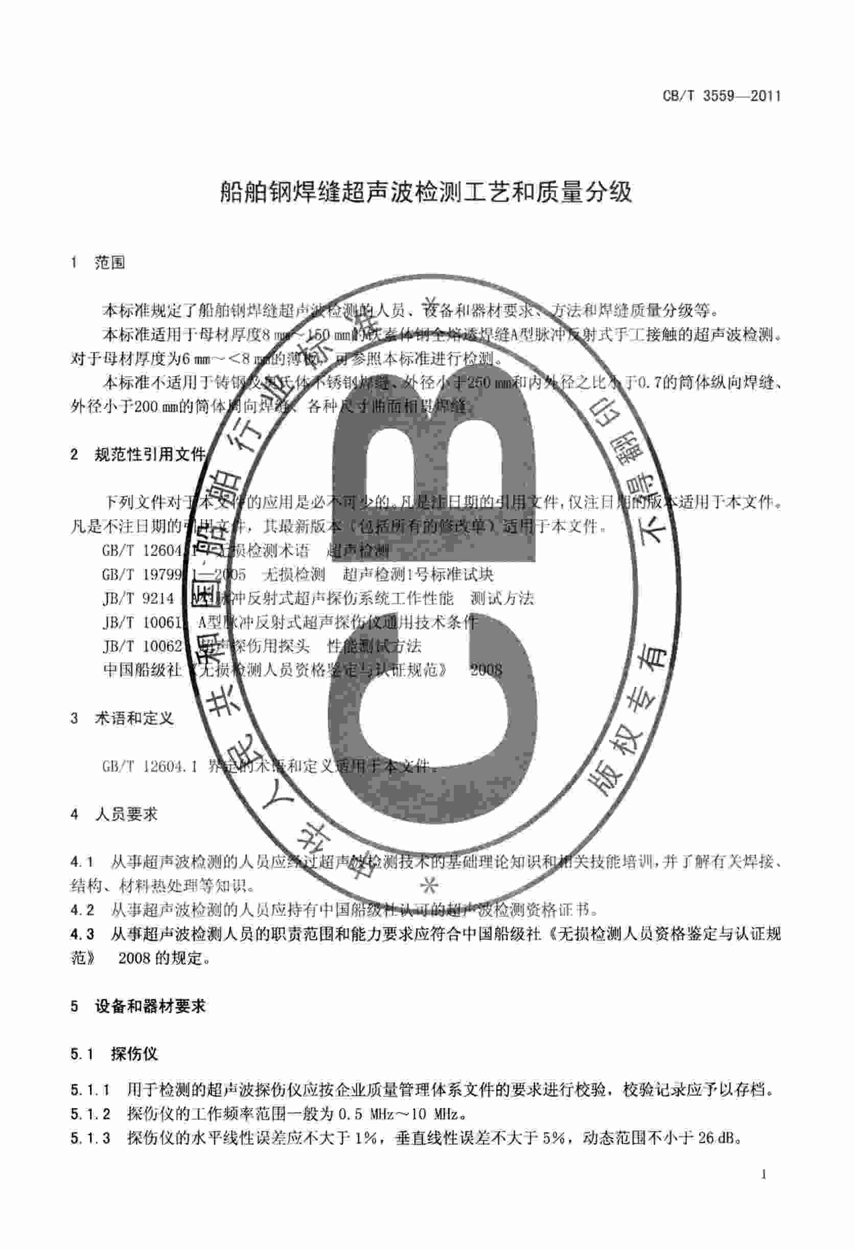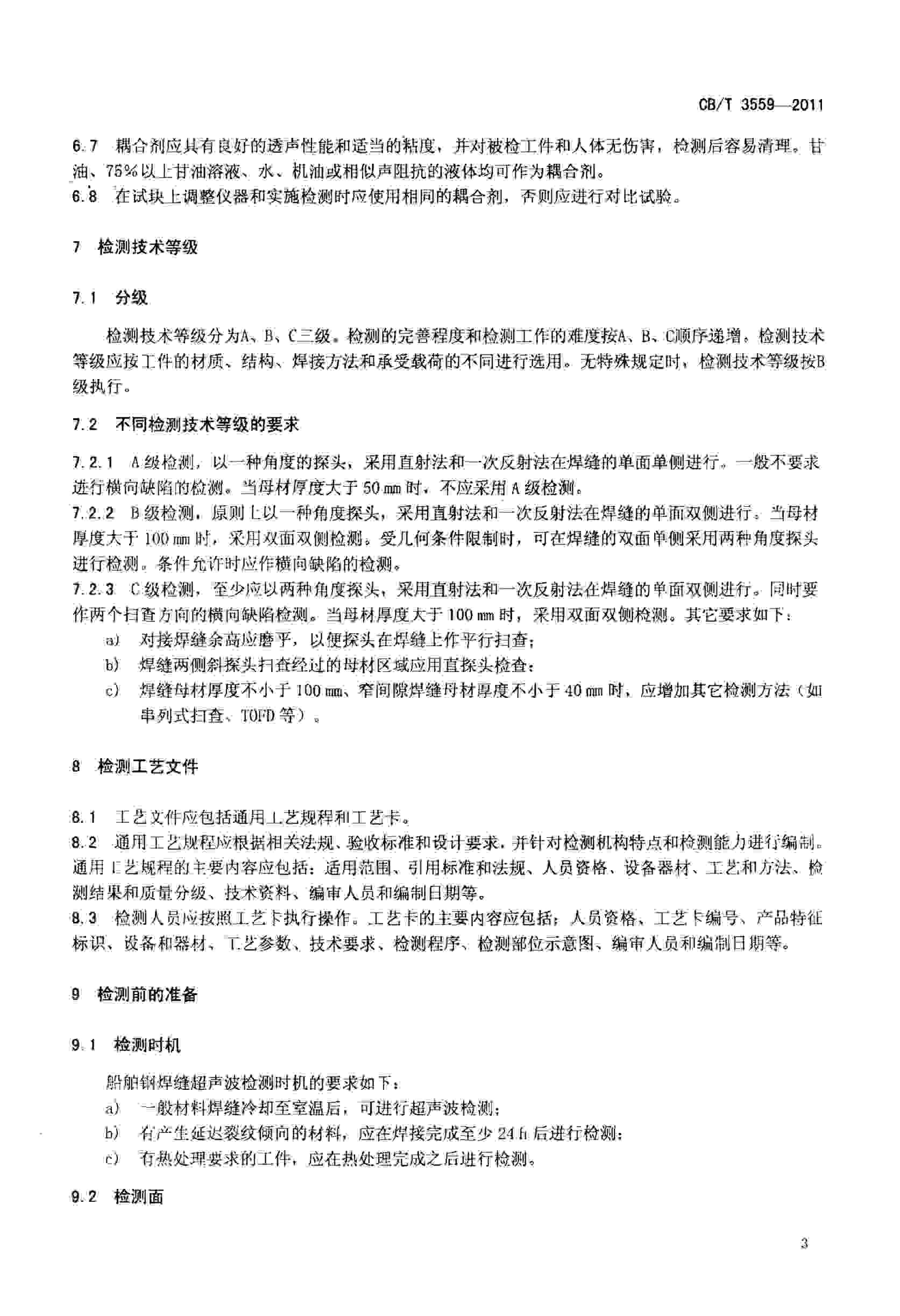 CBT3559-2011船舶鋼焊縫超聲波檢測(cè)工藝和質(zhì)量分級(jí)標(biāo)準(zhǔn)
