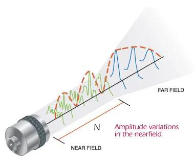 近場區(qū)通常是由于波源附近聲波干涉而產(chǎn)生的,近場區(qū)內(nèi)的超聲波聲壓不規(guī)律,缺陷回波定量不準。并且近場區(qū)長度是通過計算得出。具體計算公式如下: