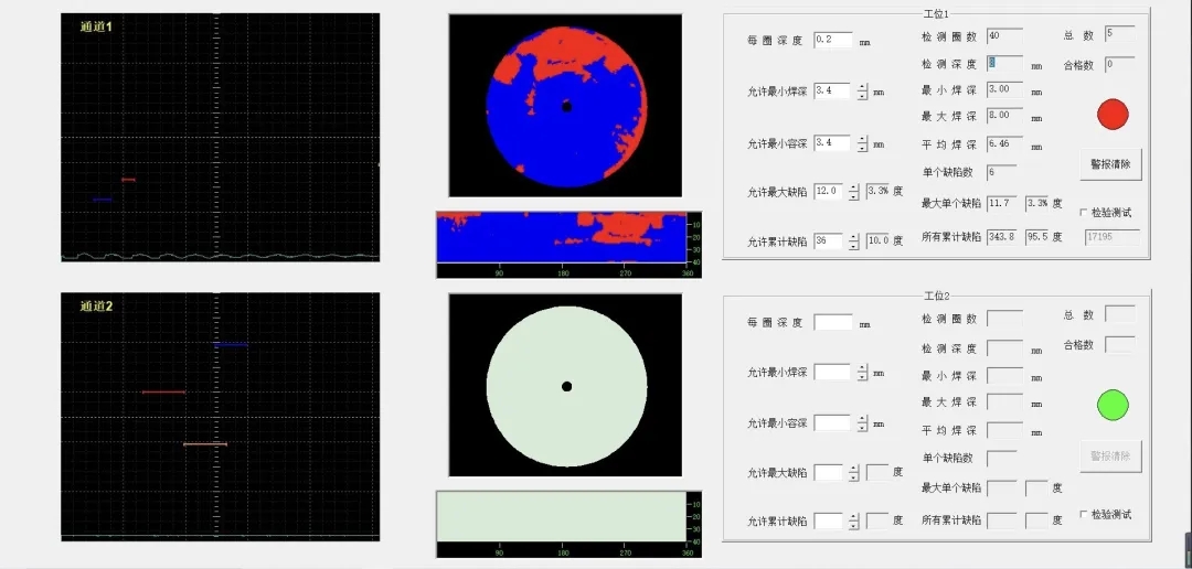 系統(tǒng)有兩個獨(dú)立的探傷通道,每一獨(dú)立檢測工位可單獨(dú)工作,兩個獨(dú)立的檢測工位可同時檢測不同的產(chǎn)品,系統(tǒng)分自動和手動,半自動三種操作模式??瑟?dú)立或同時打開兩個工位工作。