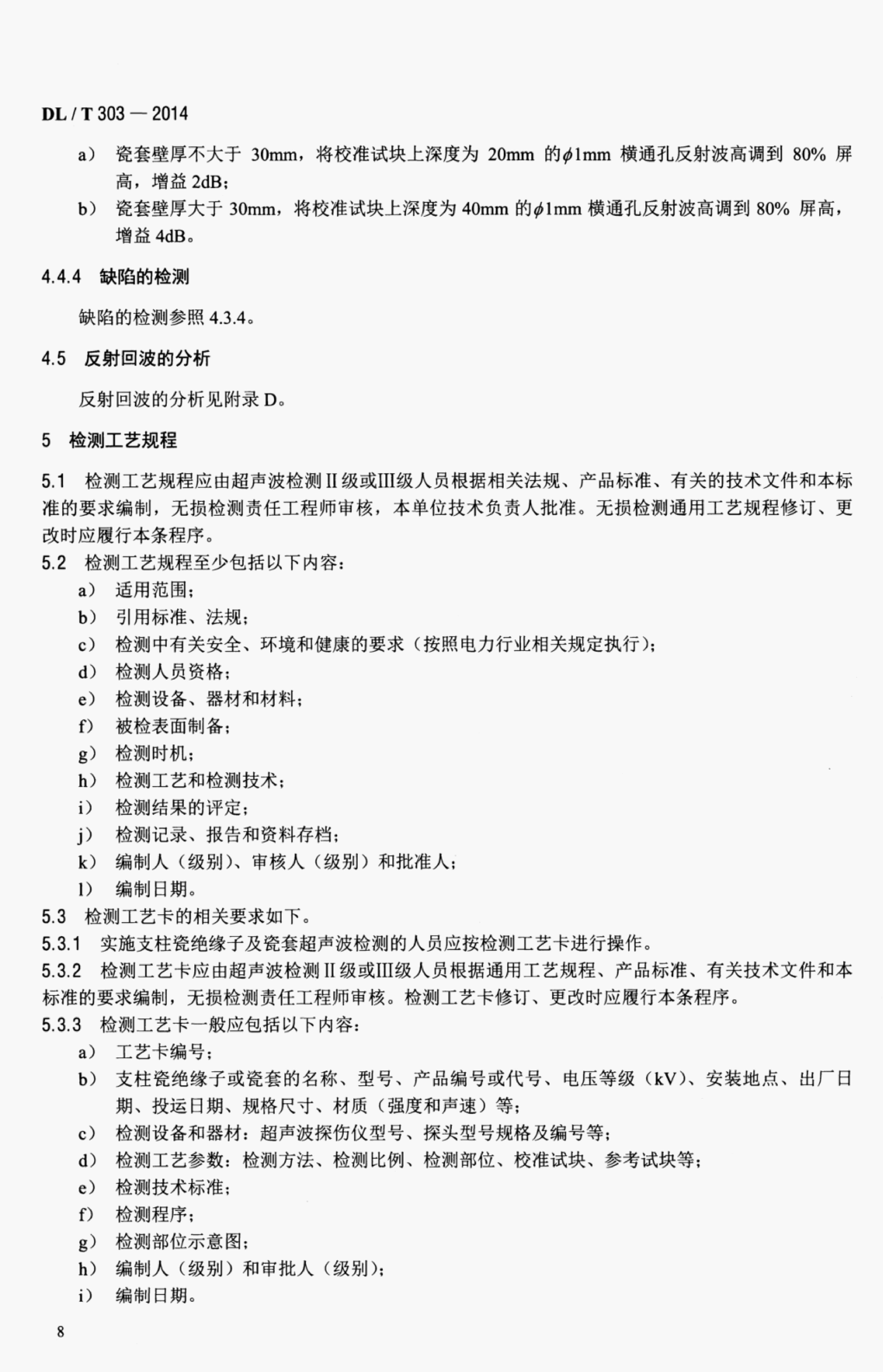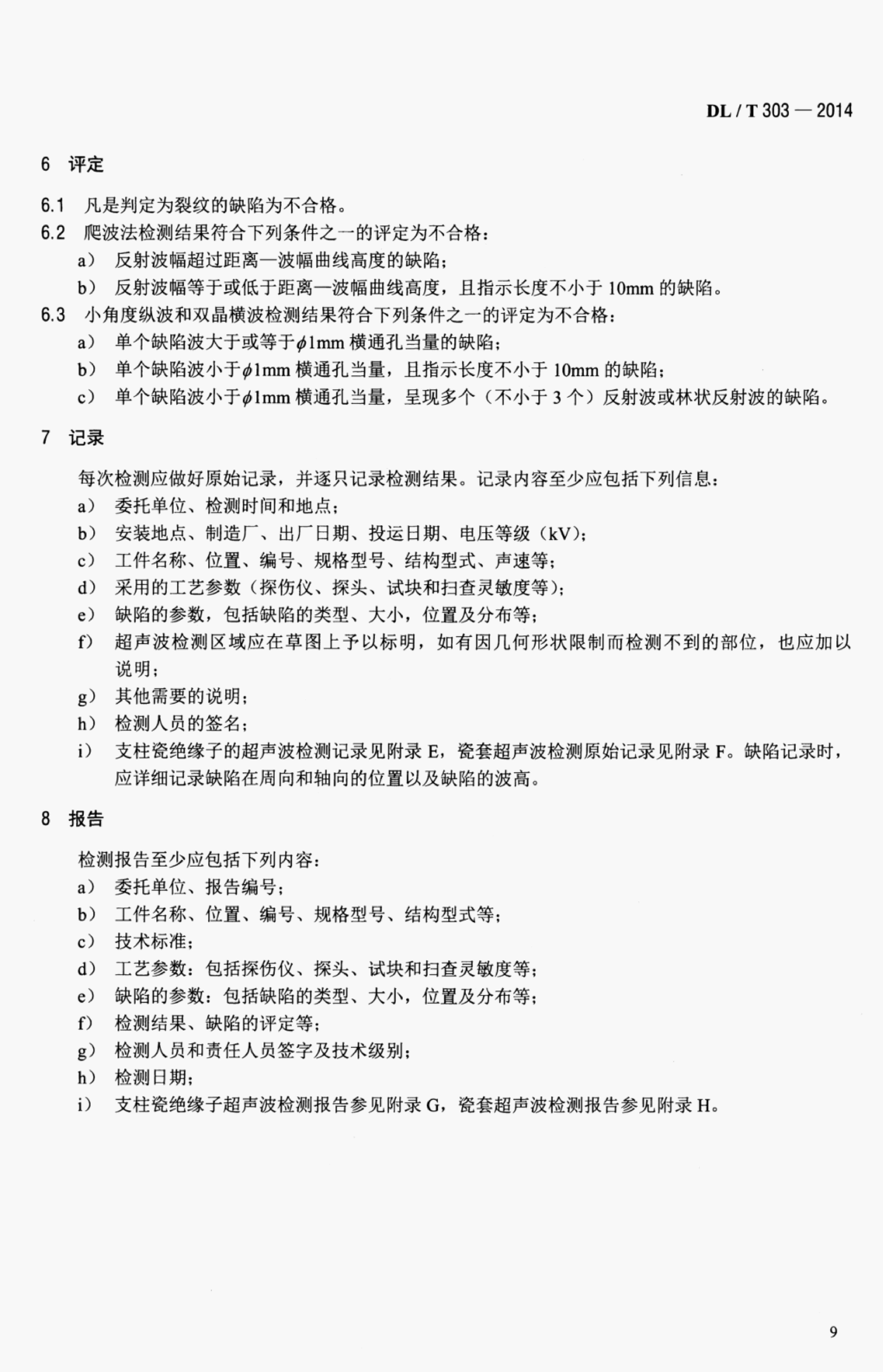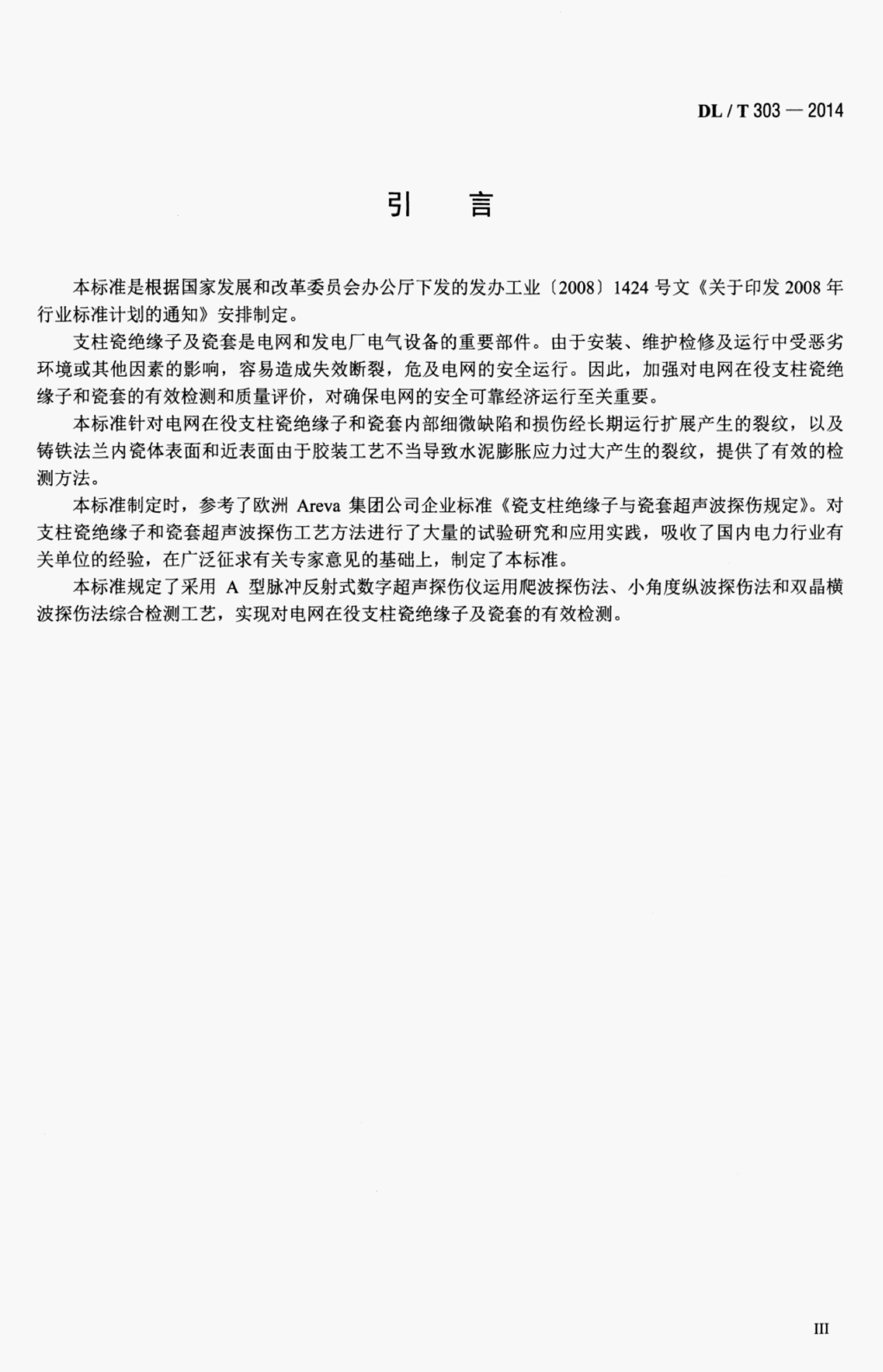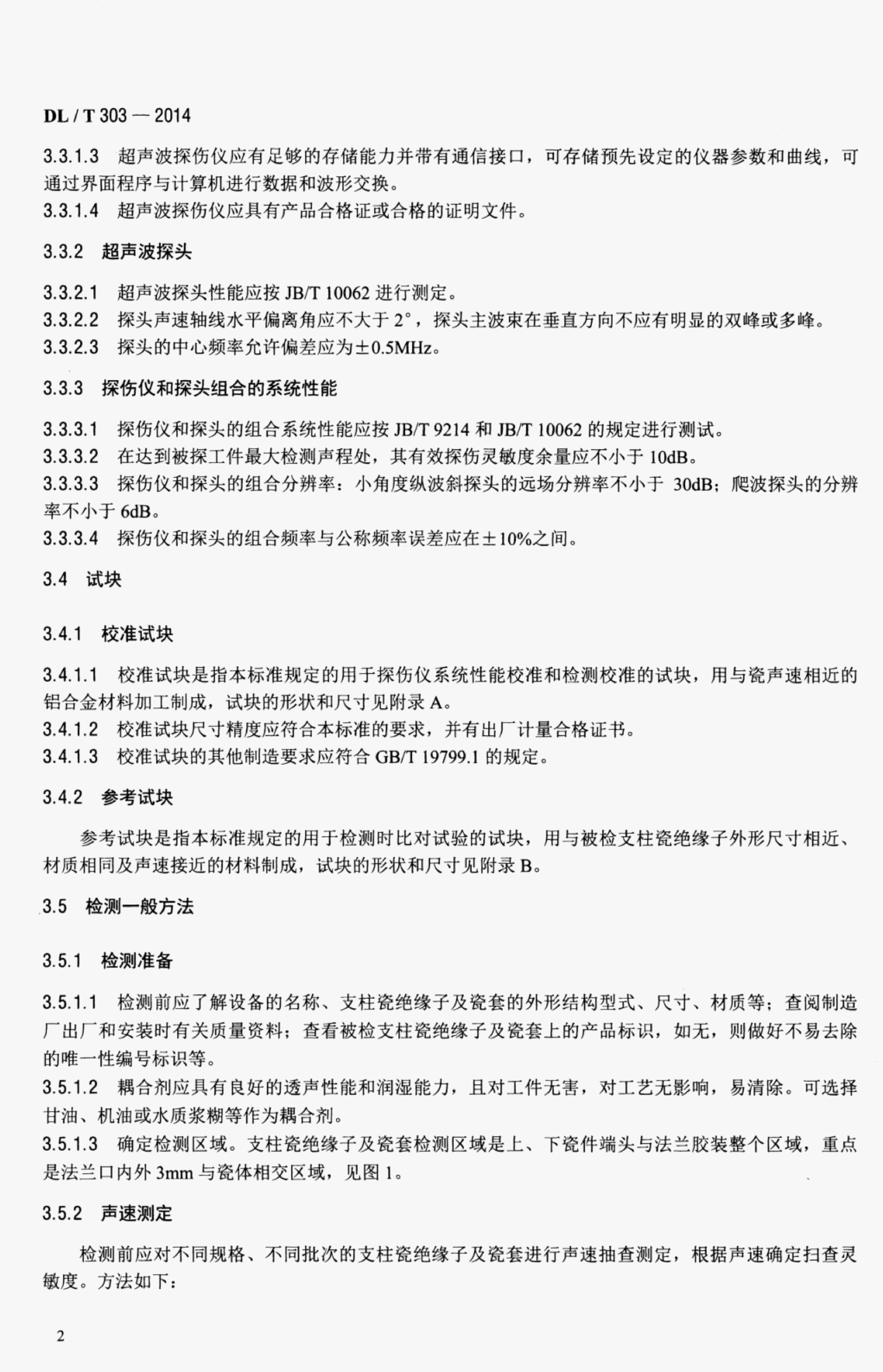 DL/T 303-2014 電網(wǎng)在役支柱 瓷絕緣子及瓷套 超聲波檢測