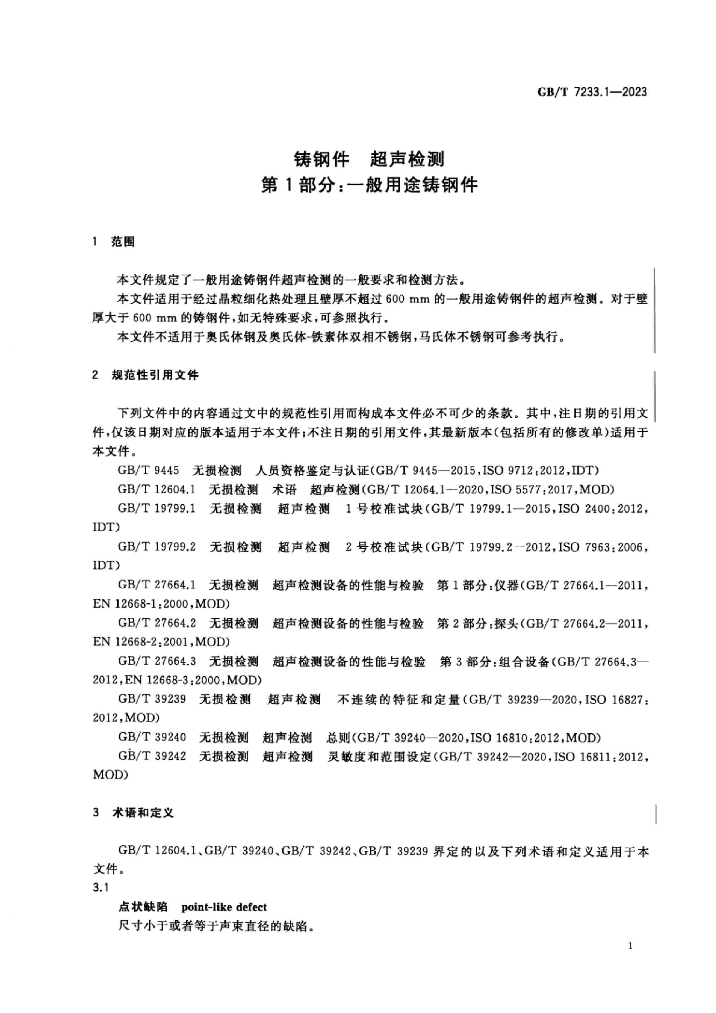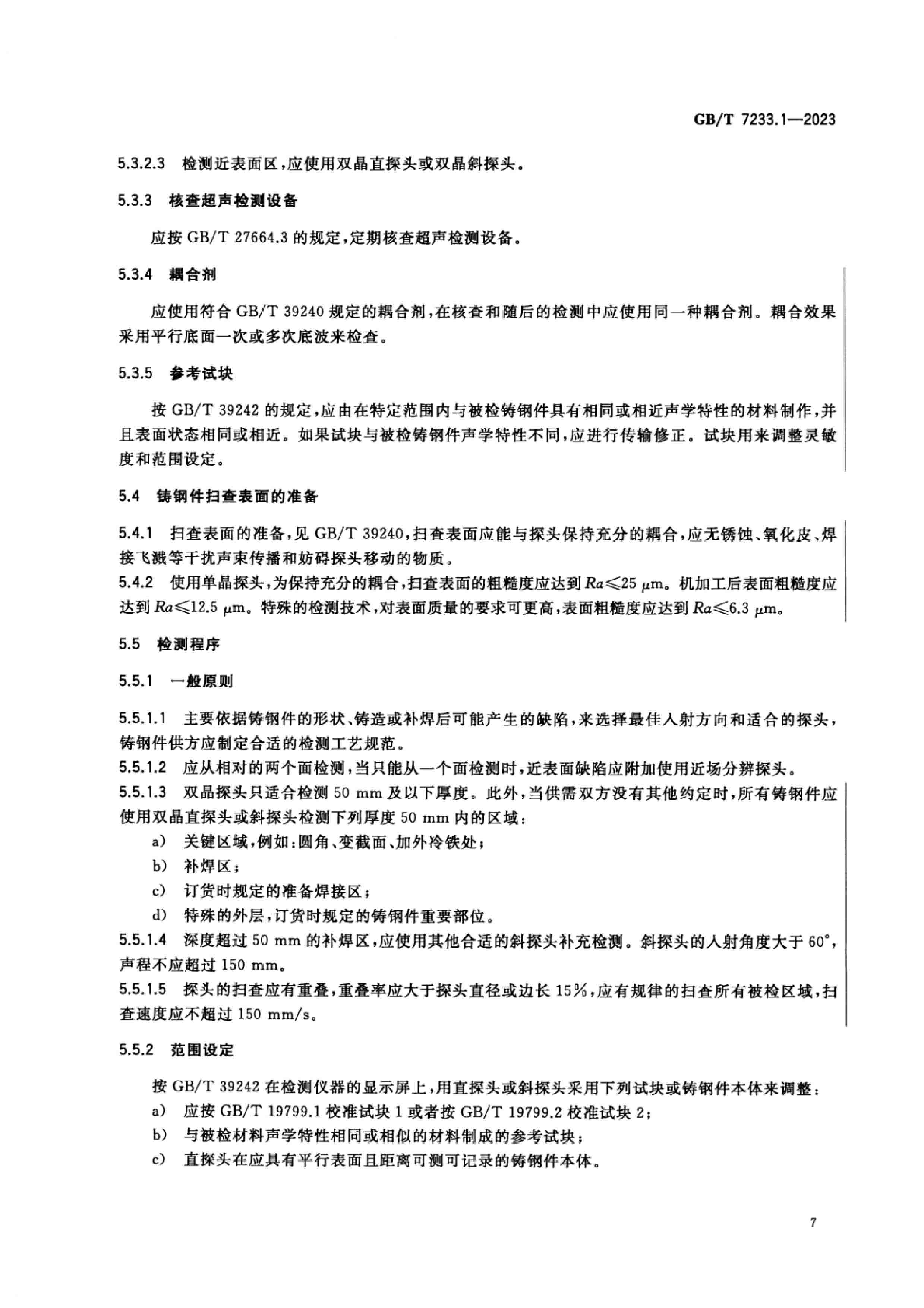 GB∕T 7233.1-2023 鑄鋼件 超聲檢測 第1部分:一般用途鑄鋼件