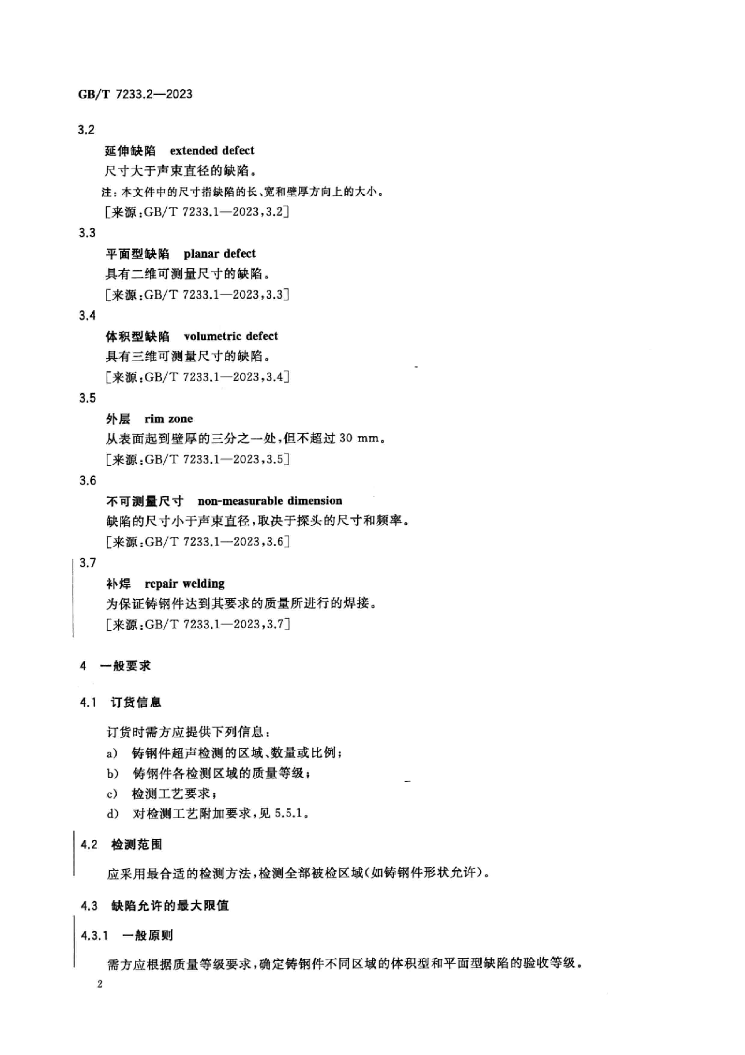 GBT 7233.2-2023 鑄鋼件 超聲檢測(cè) 第2部分:高承壓鑄鋼件